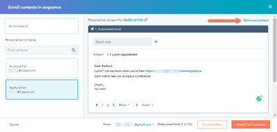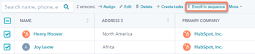 Je kunt individuele contactpersonen inschrijven vanuit hun contactpersonenrecords of de sequentietool in HubSpot.