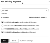 - Select the checkboxes next to the payments you want to add to the record, then click Save.