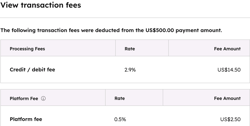 - Applied fees (including international fees if applicable) will be displayed in the dialog box. Fee amounts are displayed in your settlement currency.